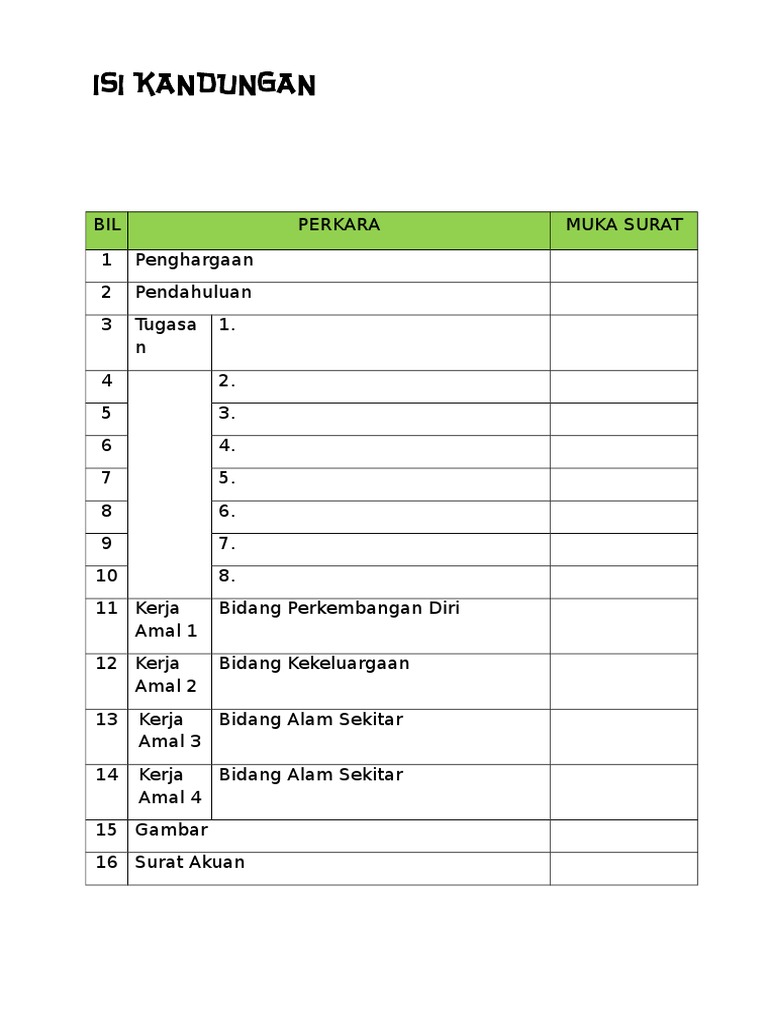 Contoh Isi Kandungan Assignment Rylandcxt